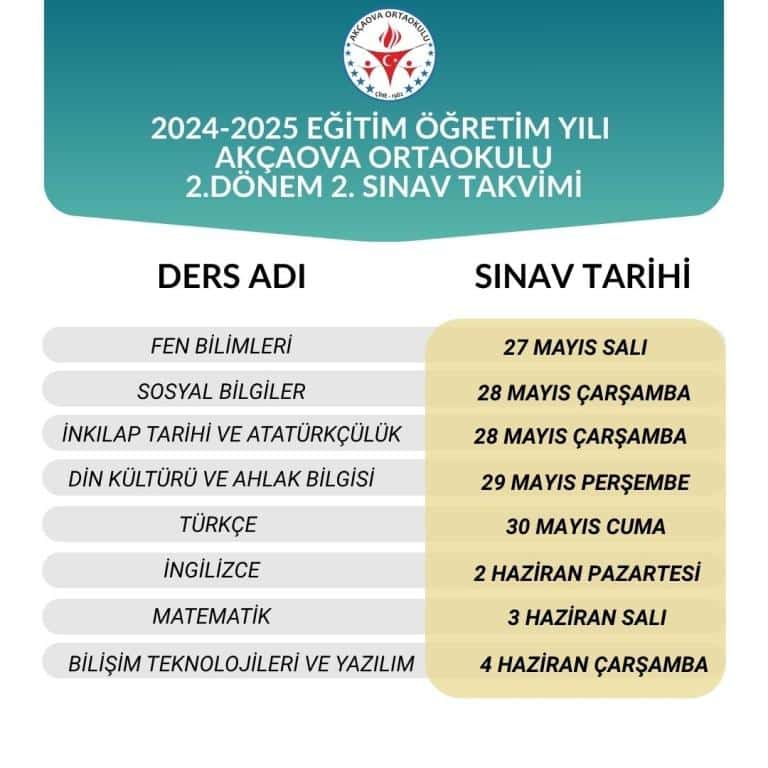 2024-2025 Eğitim öğretim yılı 2.Dönem 2. Yazılı sınav tarihleri belli olmuştur.